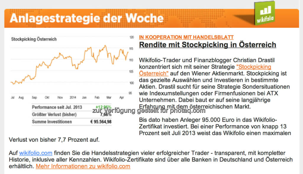 Das wikifolio von finanzmarktfoto.at-Herausgeber Christian Drastil wurde im Handelsblatt als "Anlagestrategie der Woche" präsentiert http://www.wikifolio.com/de/DRASTIL1-Stockpicking-sterr... (30.04.2014)