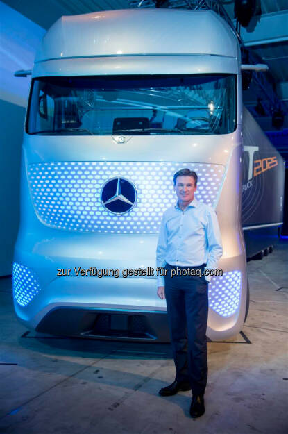 Wolfgang Bernhard, Vorstand Daimler AG, vor einem Mercedes-Benz Future Truck 2025: Daimler Trucks verkauft fast 500.000 Lkw in 2014, © Aussendung (29.12.2014)