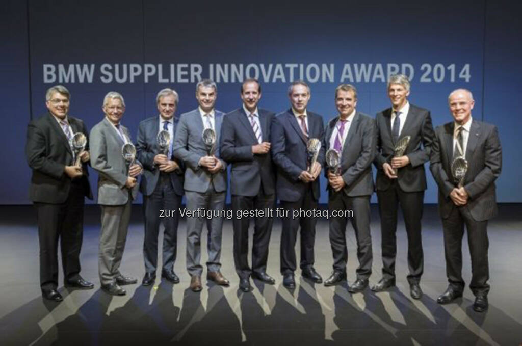 Klaus Draeger, Mitglied des Vorstands der BMW AG, Einkauf und Lieferantennetzwerk (Mitte), mit den Siegern des BMW Supplier Innovation Awards: BMW Group zeichnet Lieferanten für beste Innovationen aus, © Aussendung (02.10.2014)