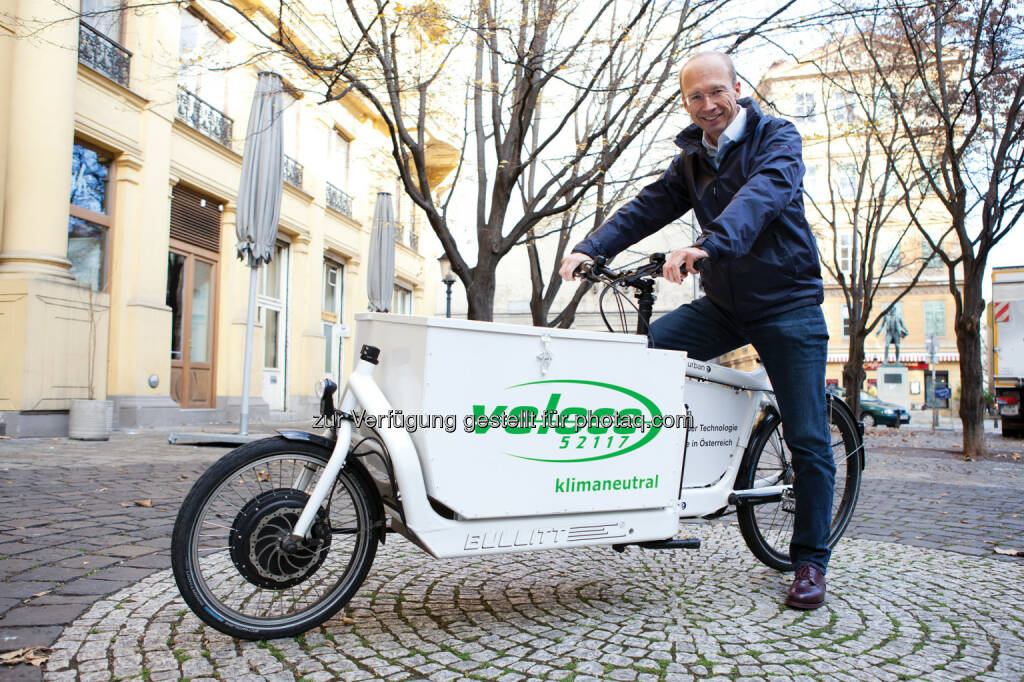 Paul Brandstätter, Geschäftsführer von Veloce am E-CargoBike: Veloce ventures GmbH: Veloce schickt E-CargoBikes ins Rennen, © Aussendung (20.11.2014)