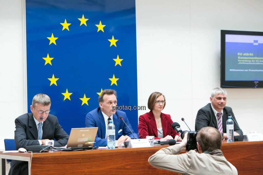 Heinz Miko (EU-Kommission Vertretung in Ö), Johann Sollgruber (Leiter der Vertretung der EU-Kommission in Ö), Gabriele Zgubic (AK Wien), Bernd Lausecker (VKI), © photaq/Martina Draper (01.06.2015)