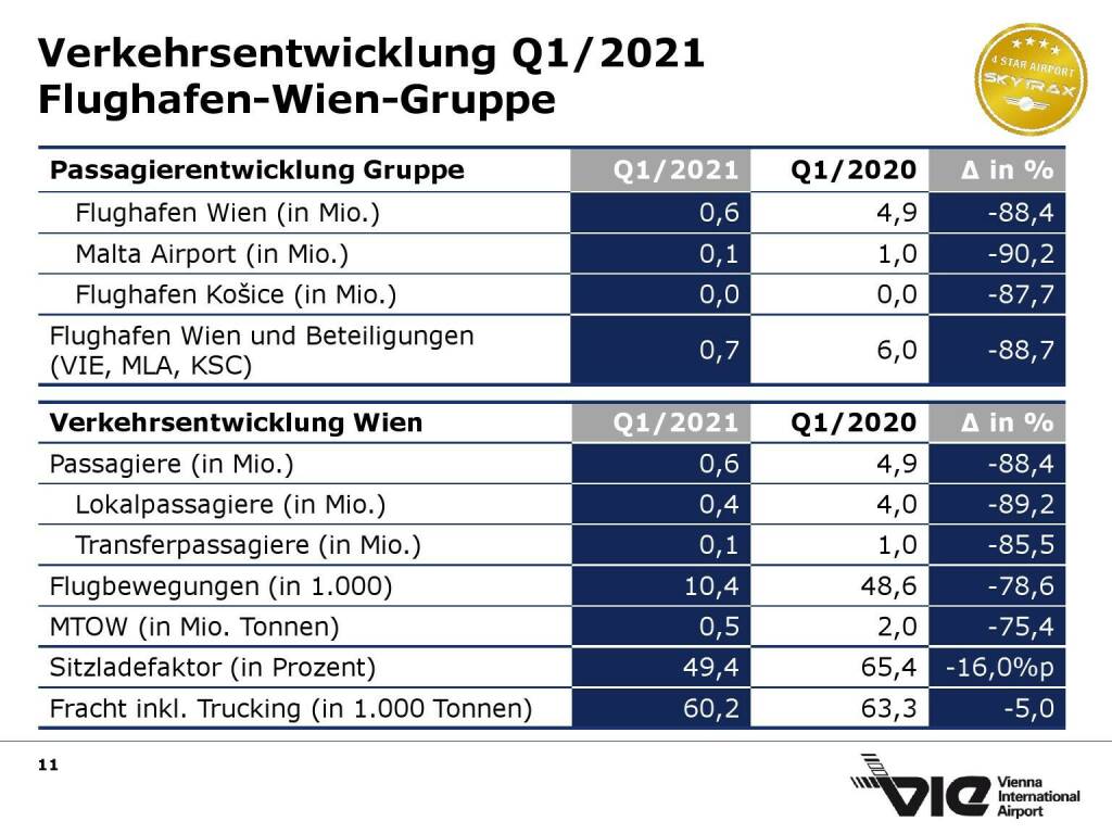 Flughafen Wien - Verkehrsergebnisse Q1/2021 (15.06.2021)