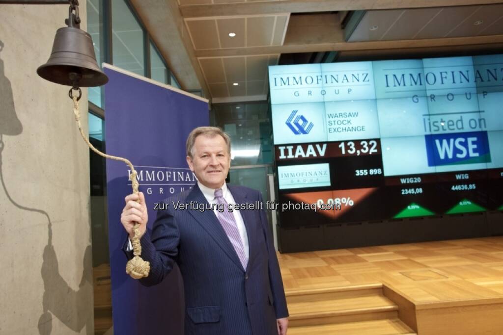 Eduard Zehetner läutet die Börseglocke - Bilder zum Immofinanz-Comeback in Warschau - http://blog.immofinanz.com/de/2013/05/10/immofinanz-in-wa..., © Immofinanz (11.05.2013)