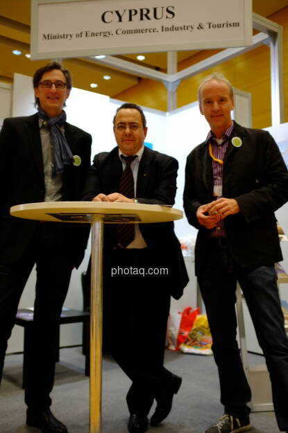 Der finanzmarktfoto-Stand? Josef Chladek, unser zypriotischer Diplomatengastgeber und Christian Drastil (17.10.2013)