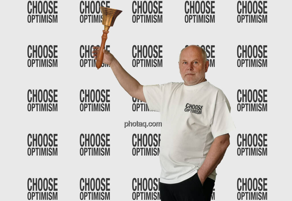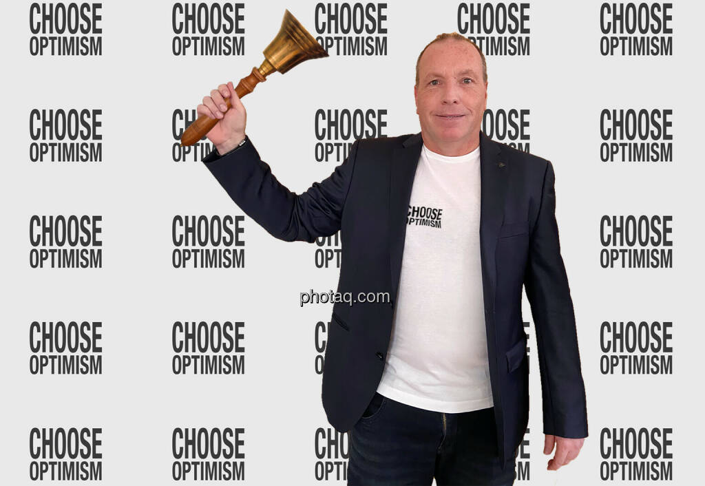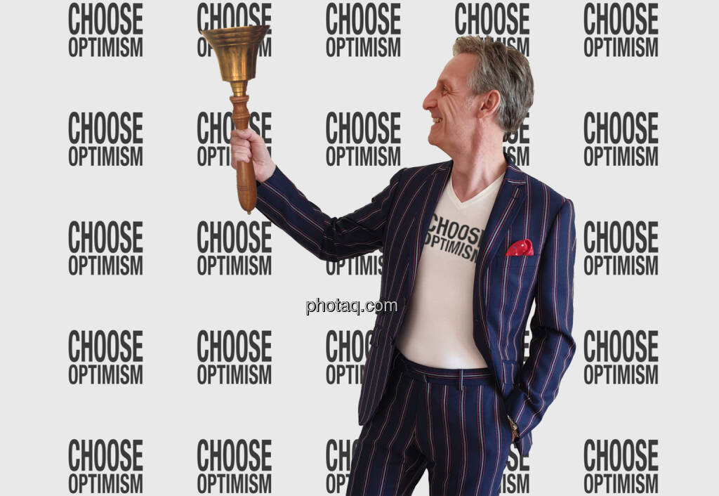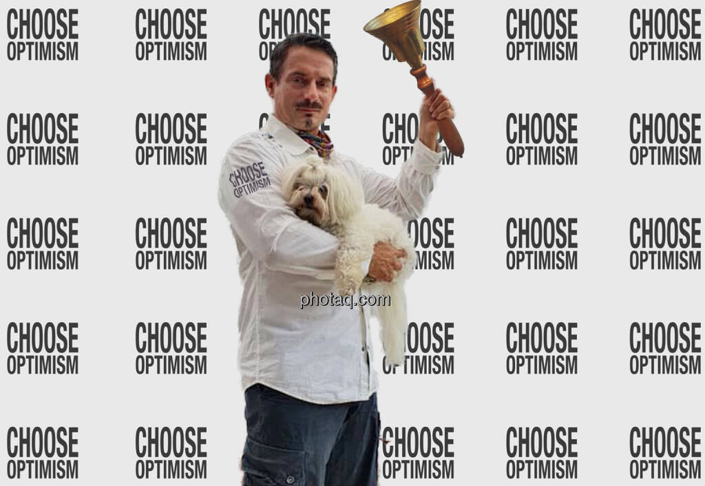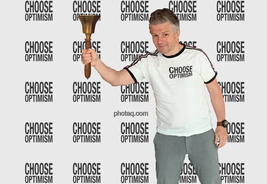 Markus Fallenböck, vorher (Own 360), Anm.: Gute Vorlage, "Glocke seitlich" macht eine grössere Gesamtplatzierung möglich, weil "Glocke über Kopf" ändert natürlich den Bildanschnitt, T-Shirt statt Hemd wärs noch gewesen, dann kann man "Choose Optimism" gross platzieren (31.03.2020)