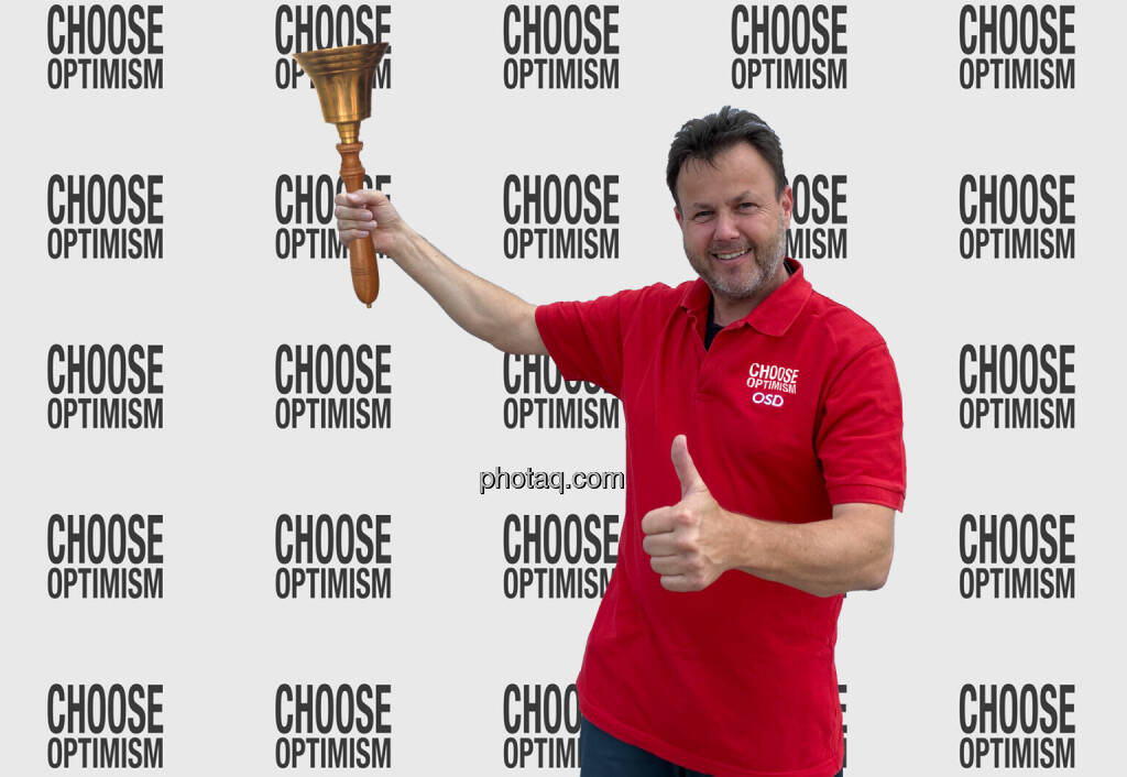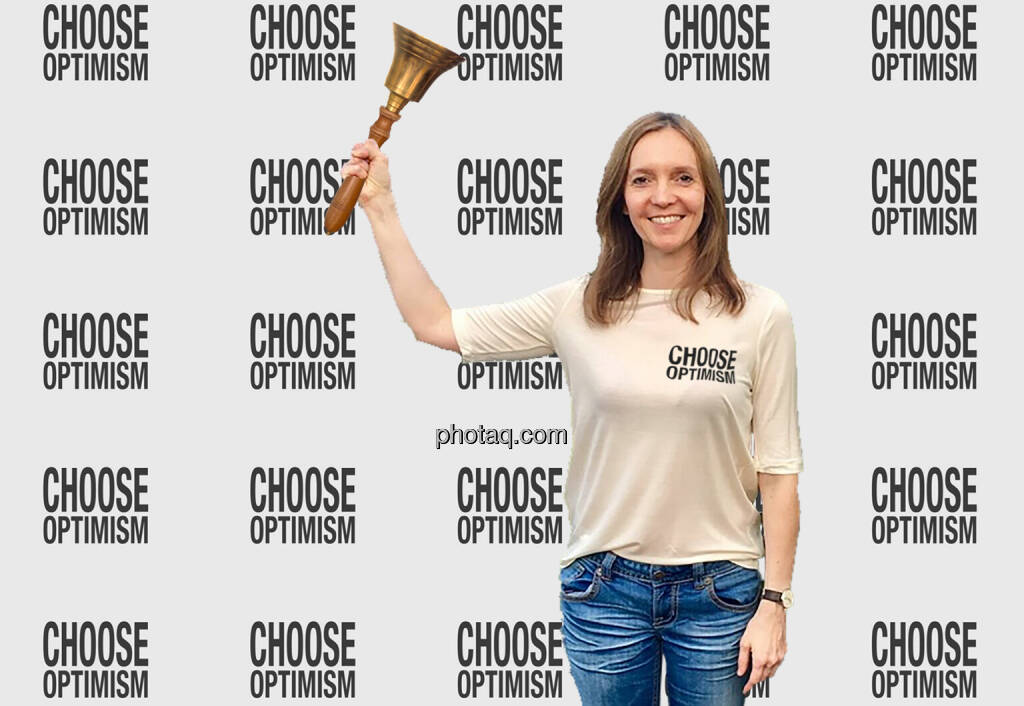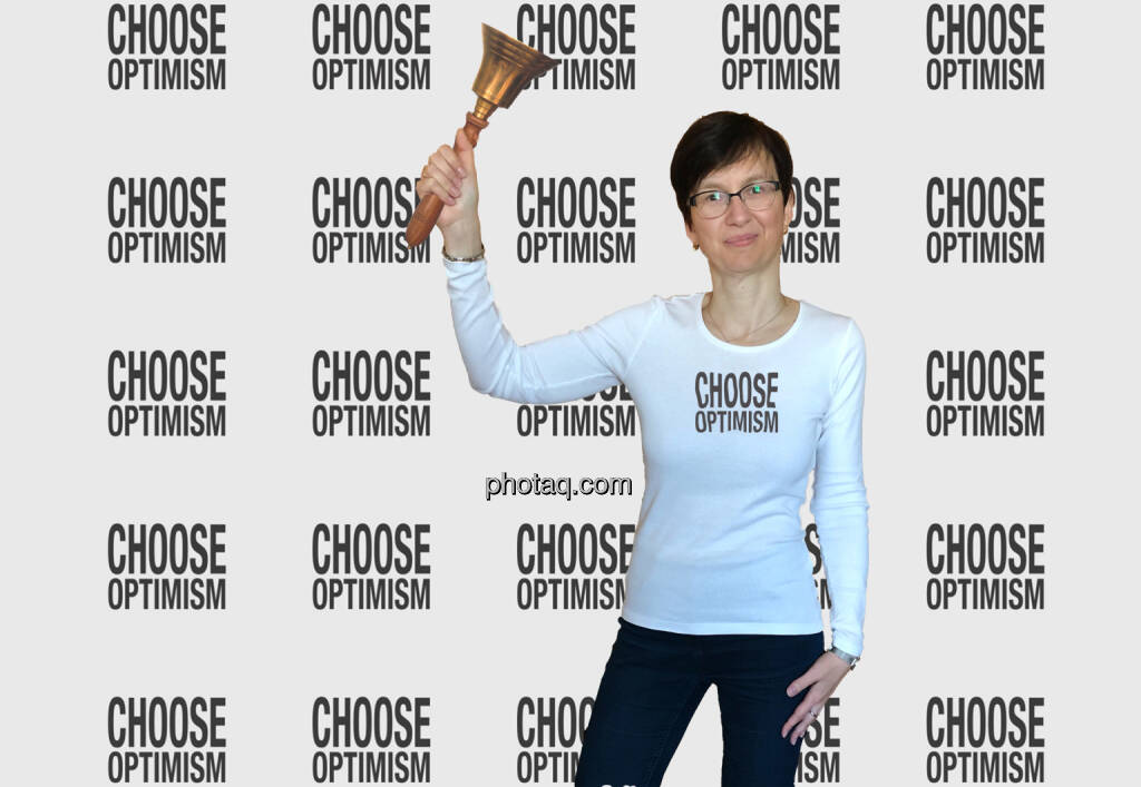 Gelerntes Bell-Läuten mit „sich treffen“ derzeit nicht möglich, aber digitales Bell-Läuten sehr wohl. Ein mail an uns, wir geben die Glocke in die Hand und montieren "Choose Optimism" auf ein weisses Shirt. Denn: Das Börse Social Network kombiniert das mit dem bereits 2008 und 2011 eingesetzten „Choose Optimism“-Claim für http://www.openingbell.eu , seit nunmehr fast 1000 Tagen die tägliche Opening Bell. Supporter werden? Mail an christian@boerse-social.com.