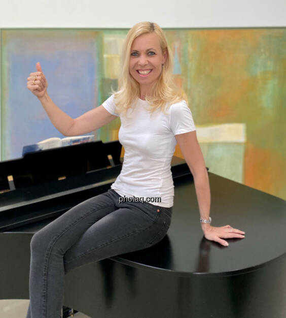 Antje Erhard, vorher (Der Aktionär TV), Anm.: Leider konnten wir das Klavier nicht mitfreistellen, weil der Bildausschnitt sonst nicht gepasst hätte. Antje hat aber feine Zeilen mitgeschickt: “#chooseoptimism - die positiven Seiten dieser Krise? Viel mehr Sport (Schweinehund, ich schaff das), viel öfter Freunde anrufen, viel öfter draußen und die Sonne genießen, viel mehr Spiele-Abende mit der Familie, täglich mit den Eltern facetimen - und: einfach mal wieder am Klavier sitzen. Meinem Sohn ein gutes Vorbild (“Mama, du übst ja selber nie!”), trotz vieler Rückschläge... einfach machen. Darf bleiben!" (27.04.2020)