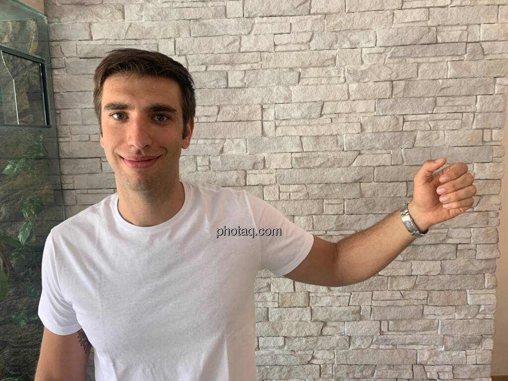 Paul Rettenbacher, vorher (Polytec), Anm: Die bisher beste Vorlage von der Handhaltung her. Und Paul hattte sogar noch ein Shirt aus der alten Choose Optimism Serie im Homeoffice (08.04.2020)