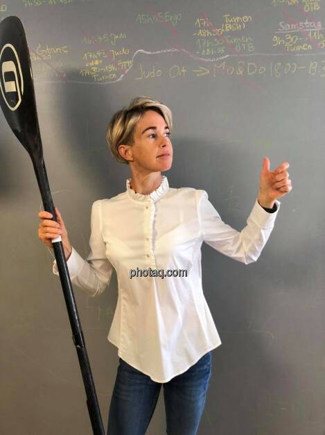 Violetta Oblinger-Peters, vorher (wildwater.at): Tolle Vorlage, man sieht, dass die Olympia-Dritte auch Kunst-Background hat; Fast schade, dass die Tafel dem Choose Optimism Hintergrund weichen musste (18.05.2020)