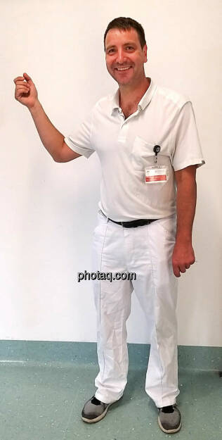 Dominik Meraner, vorher (https://www.orthopädie-meraner.wien ) - Anm.: Weißes Arztgewand natürlich bestmögliche Vorlage für die Montage des Logos, sehr fein (15.06.2020)