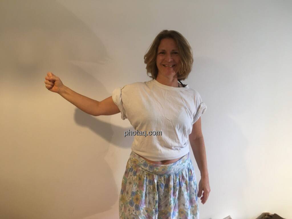 Regina Anzenberger, vorher (Galeristin, Künstlerin), Anm.: Am ersten Tag der Eröffnung der Galerie hat es geklappt, auch das mit weißem Oberteil... (23.04.2020)