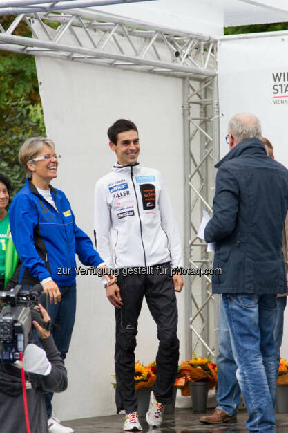 Landesrätin Petra Bohuslav und Wolfgang Hiller, Sieger Viertelmarathon Herren, Wachau Marathon 2014 © Milena Ioveva (14.09.2014)
