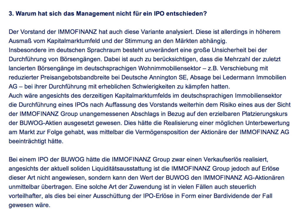 Frage an Immofinanz/ Buwog: Warum hat sich das Management nicht für ein IPO entschieden? (18.04.2014)