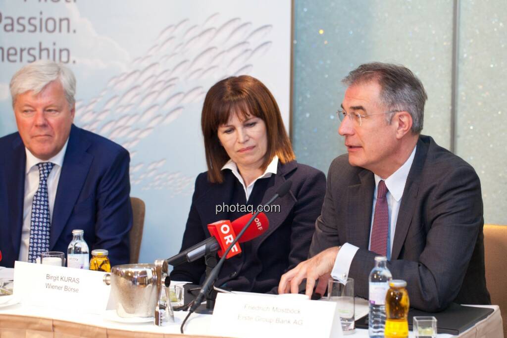 Walter A. Stephan (CEO FACC), Birgit Kuras (Börse Wien), Friedrich Mostböck ( Erste Group) , © photaq/Michi Mejta (04.06.2014)