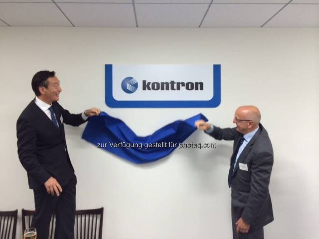 Kontron Japan office opened: logo sign unveiling by CEO Rolf Schwirz and Satoru Hayashi, General Manager in Japan  Source: http://facebook.com/kontron, © Aussender (15.07.2014)