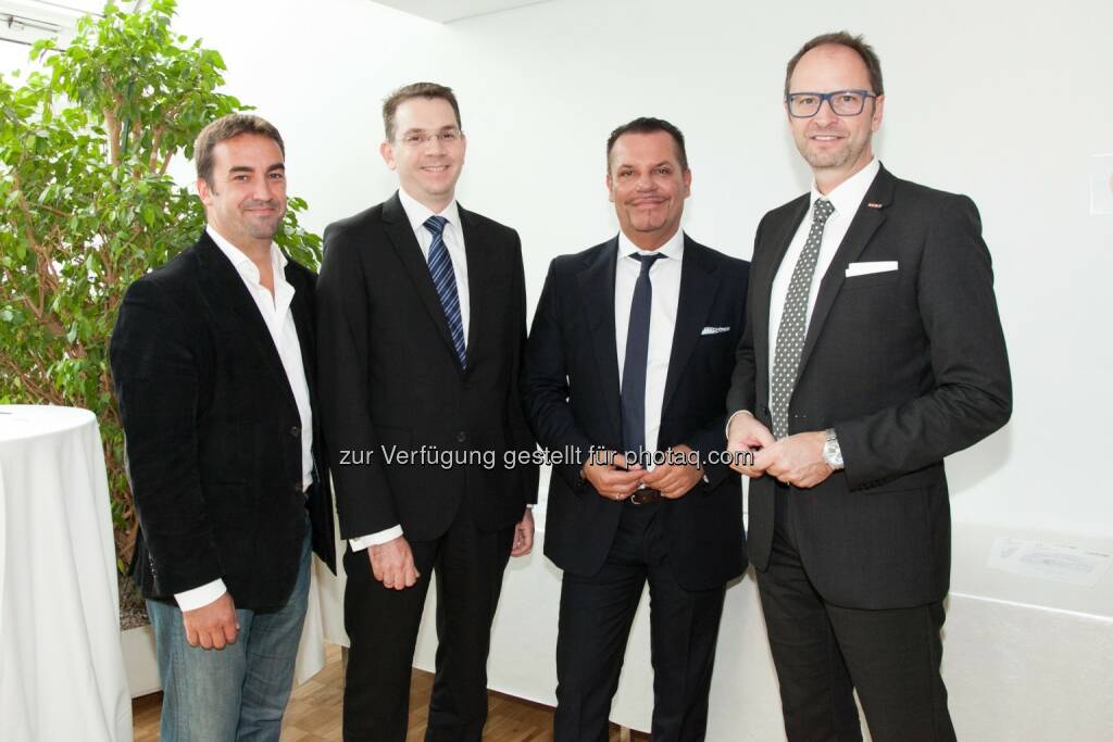 Gerhard Burtscher (BTV Vorstand), Josef Sebesta (BTV Vertriebsleiter Privatkunden Wien), Martina Pagitz (BTV Vertriebsleiterin Firmenkunden Wien) und Peter Gaugg (BTV Vorstandssprecher): 25 Jahre Bank für Tirol und Vorarlberg AG in Wien, © Aussender (08.09.2014)