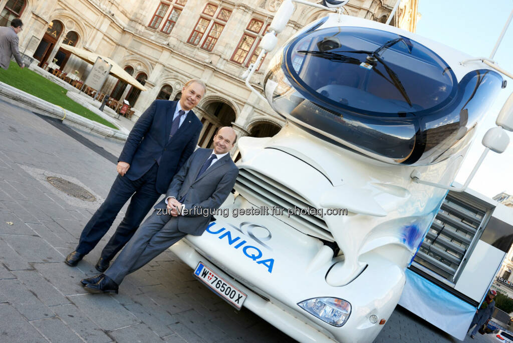 Dominique Meyer, Direktor der Wiener Staatsoper und Uniqa Österreich Vorstand Peter Eichler - 850 Pferdestärken für die Gesundheit - Uniqa Trucks im Dienst der Staatsoper (Bild: Uniqa/Klimpt), © Aussendung (16.10.2014)
