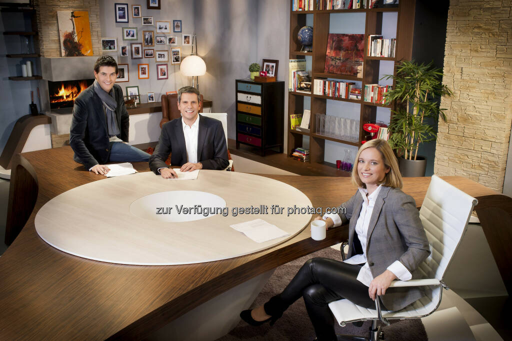 Sabine Mord, Christian Nehiba, Gundula Geiginger: Nächstes Moderatoren-Trio bei Guten Abend Österreich auf Puls4 (c) Gerry Frank, Puls 4 (05.02.2013)