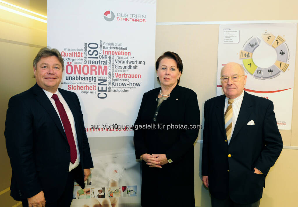 Harald Plöckinger, Vize-Präsident Austrian Standards, Mitglied des Vorstands KTM AG, Elisabeth Stampfl-Blaha, Direktorin Austrian Standards, Univ.Prof. Walter Barfuß, Präsident Austrian Standards: Austrian Standards: Österreich unter Top-Ten in der internationalen Normung, © Aussender (14.01.2015)