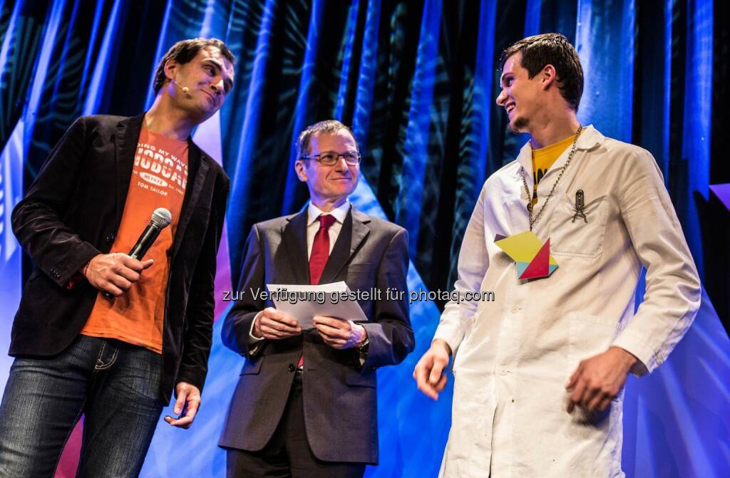 Science Slam-Veranstalter Bernhard Weingartner, Prof. Johann Bacher (Dekan der Sozial- und Wirtschaftswissenschaftlichen Fakultät der JKU) und Markus Nadlinger (Sieger des 1. Science Slam Linz): Gestern Dienstag, 20. Jänner 2015, fand der „1. Science Slam Linz“ im Posthof Linz statt, bei dem sechs Wissenschaftler in lockerer Atmosphäre ihre Forschungsarbeiten in maximal sechs Minuten pointiert und frech präsentierten. Die Johannes Kepler Universität (JKU) Linz unterstützte den Science Slam nicht nur als Partner, sondern es machten gleich fünf JKU-Forscher mit., © Aussender (21.01.2015)