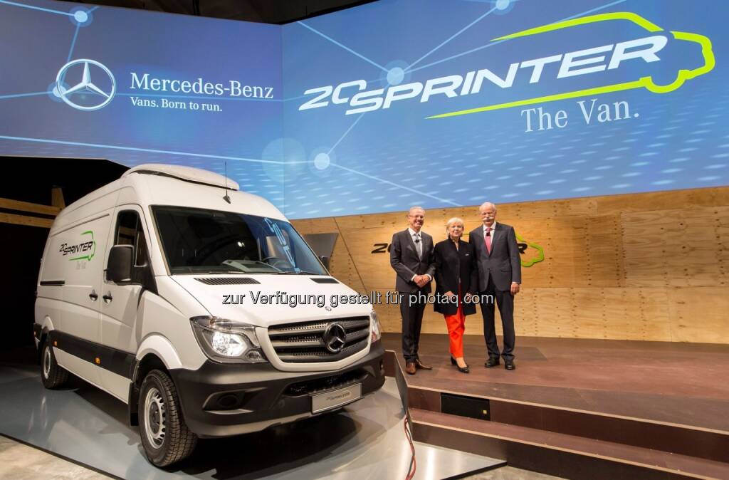 Volker Mornhinweg (Leiter Mercedes-Benz Vans), Hannelore Kraft (Ministerpräsidentin des Landes Nordrhein-Westfalen), Dieter Zetsche (Vorstandsvorsitzender der Daimler AG und Leiter Mercedes-Benz Cars) : Große Feierstunde im Mercedes-Benz Werk Düsseldorf - der Sprinter feierte sein 20-jähriges Jubiläum : (c) Daimler AG, © Aussendung (10.09.2015)