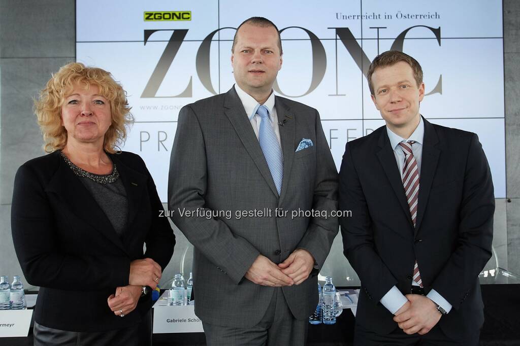 Gabriele Schöfmann, Marketing Zgonc, Michael Dockal, Geschäftsführer von Zgonc Österreich und Paul Eiselsberg, Imas International: Reichl und Partner PR: Trotz Emanzipation: Nur ein Fünftel der Frauen werkt daheim, © Aussender (02.03.2015)