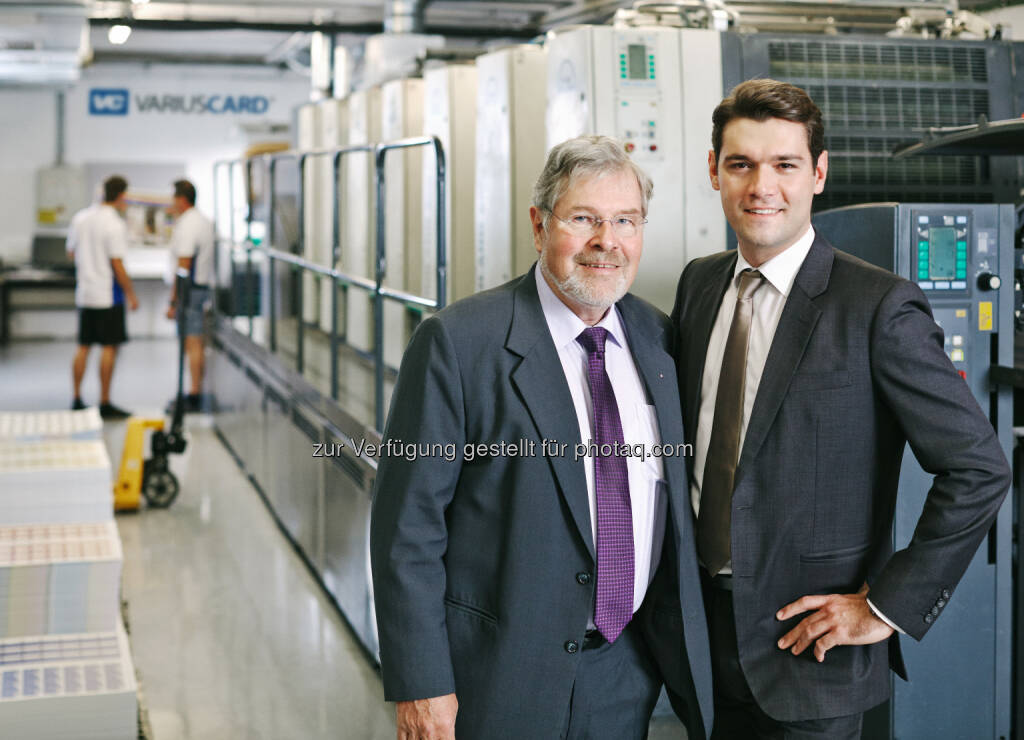 Frank und Michael Dorner (VariusCard) vor der neuen MAN Roland UV-Offset-Druckmaschine: VariusCard & VariusPrint – ein starkes Team: