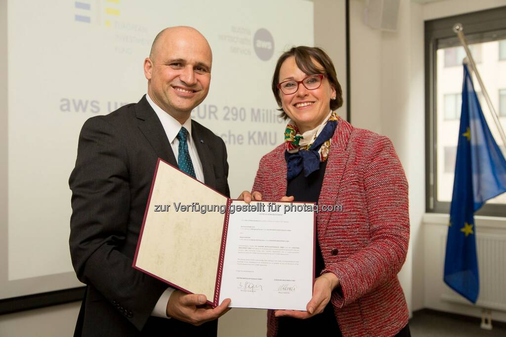 Bernhard Sagmeister, Geschäftsführer aws und Marjut Santoni, EIF Deputy Chief Executive: Austria Wirtschaftsservice: aws und EIF: 290 Millionen Euro für österreichische Klein- und Mittelbetriebe, © Aussender (13.03.2015)