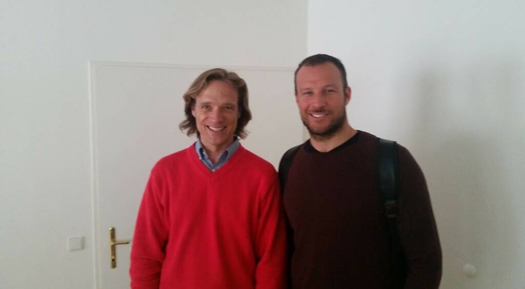 Daniel Keiper-Knorr und Axel Lund Svindal bei Speed Invest, © Aussendung (06.05.2015)