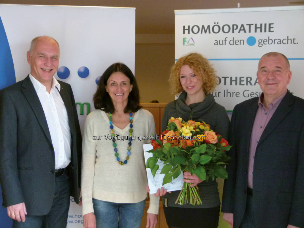 Martin Peithner, Geschäftsführer der Dr. Peithner KG, Michaela Zorzi, Allgemeinmedizinerin, Homöopathin (Preisträgerin 2007), Magdalena Rumpl, Preisträgerin 2014, Anton Rohrer, Allgemeinmediziner und Homöopath: Jungärztin aus Oberösterreich für Diplomarbeit ausgezeichnet, © Aussendung (20.04.2015)