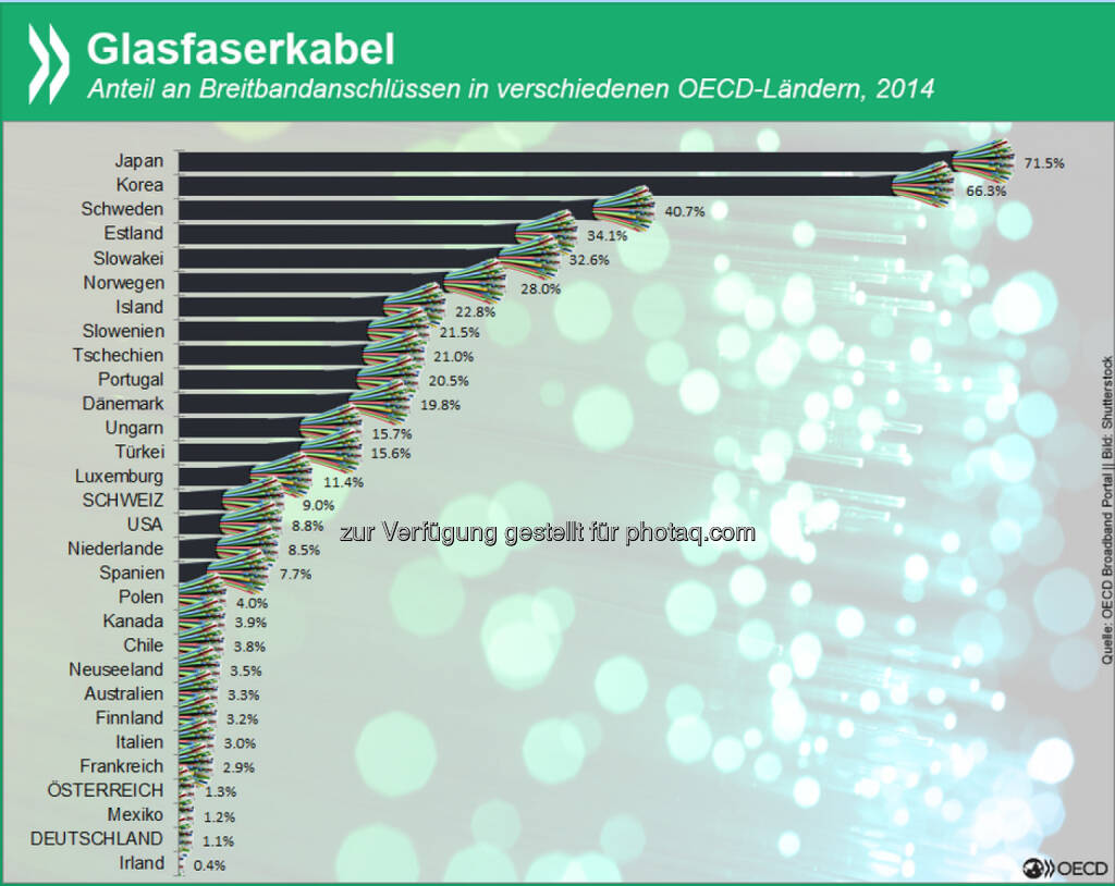 Glas-was?! Nur ein Prozent der Breitbandanschlüsse in Deutschland werden über Glasfaserkabel betrieben. Auch in Österreich ist diese Technik weitgehend unbekannt, wohingegen sie in den asiatischen OECD-Ländern mehrheitlich verwendet wird.