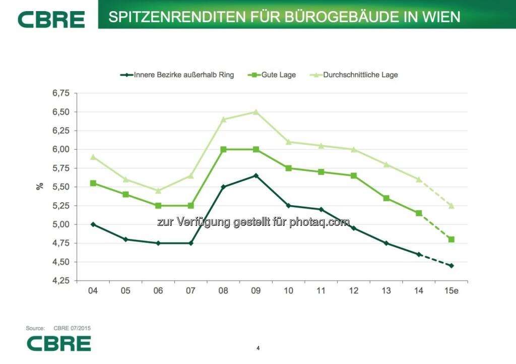 Cbre: Spitzenrenditen für Bürogebäude in Wien, © Aussender (07.07.2015)