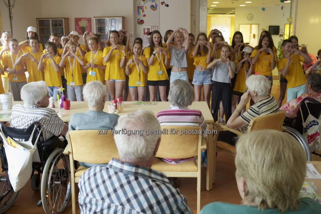 VIG Kids Camp 2015: Kinder aus 22 Nationen singen und tanzen für österreichische Seniorinnen und Senioren : 2015 veranstaltete der Wiener Städtische Versicherungsverein, Hauptaktionär der Vienna Insurance Group, zum sechsten Mal das VIG Kids Camp. Neben 14 Tagen Spiel und Spaß - von Wanderungen, Entdeckungsreisen zu Salz- und Tropfsteinhöhlen, sportlichen Herausforderungen und Sightseeing in Wien und Salzburg - setzt der Wiener Städtische Versicherungsverein auch auf soziales Engagement und generationenübergreifende Begegnungen : © Fotograf: Robert Newald/Fotocredit: Wiener Städtischer Versicherungsverein/Robert Newald, © Aussender (12.08.2015)