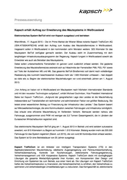 Kapsch erhält Auftrag in Weißrussland , Seite 1/2, komplettes Dokument unter http://boerse-social.com/static/uploads/file_289_kapsch... (17.08.2015)