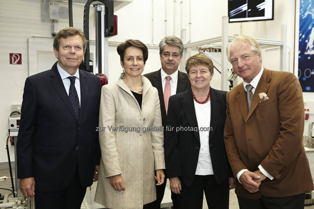 Lothar Roitner (GF, Fachverband der Elektro- und Elektronikindustrie), Sabine Herlitschka (Vorstandsvorsitzende Infineon Technologies Austria AG, Feei), Wolfgang Hesoun (Vorstandsvorsitzender Siemens AG Österreich), Brigitte Ederer (Feei-Obfrau), Kari Kapsch (COO Kapsch-Group Beteiligungs GmbH/CEO Kapsch CarrierCom) : Elektro- und Elektronikindustrie besucht FH Technikum Wien : Fotocredit: FH Technikum Wien/APA-Fotoservice/Roßboth, © Aussendung (09.10.2015)