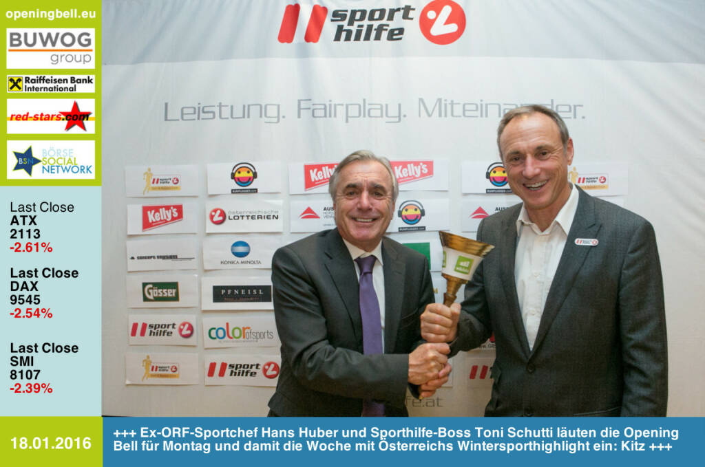 #openingbell am 18.1.: Ex-ORF-Sportchef Hans Huber und Sporthilfe-Boss Toni Schutti läuten die Opening Bell für Montag und damit die Woche mit Österreichs Wintersporthighlight ein: Kitz http://www.openingbell.eu (18.01.2016)