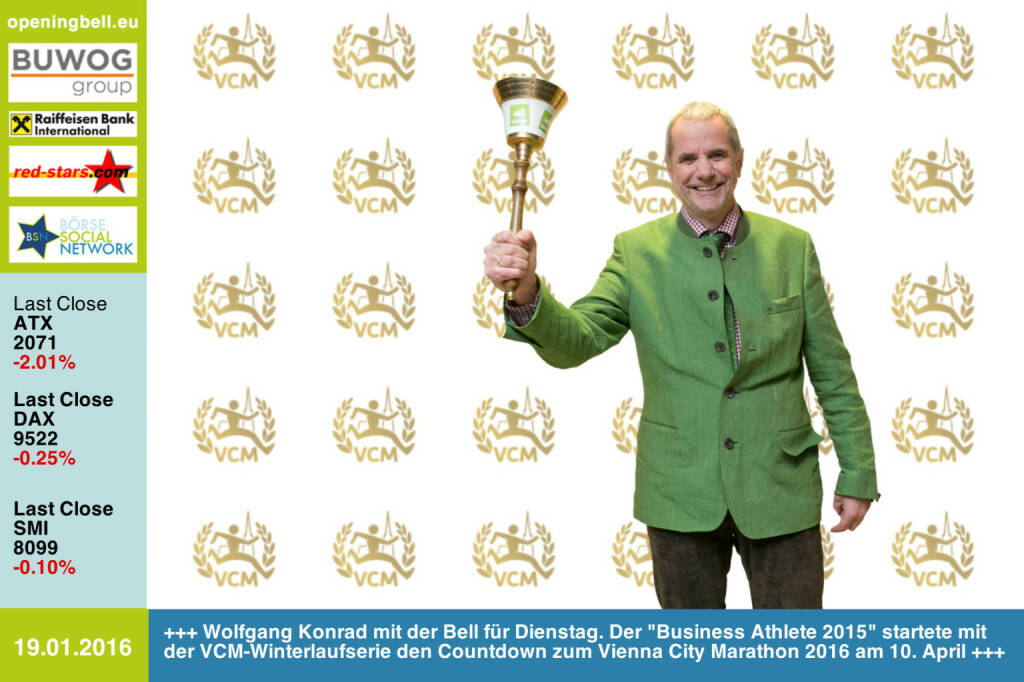 #openingbell am 19.1.: Wolfgang Konrad mit der Opening Bell für Dienstag. Der "Business Athlete 2015" startete mit der VCM-Winterlaufserie den Countdown zum Vienna City Marathon 2016 am 10. April http://www.vienna-marathon.com http://www.runplugged.com/baa http://www.openingbell.eu (19.01.2016)