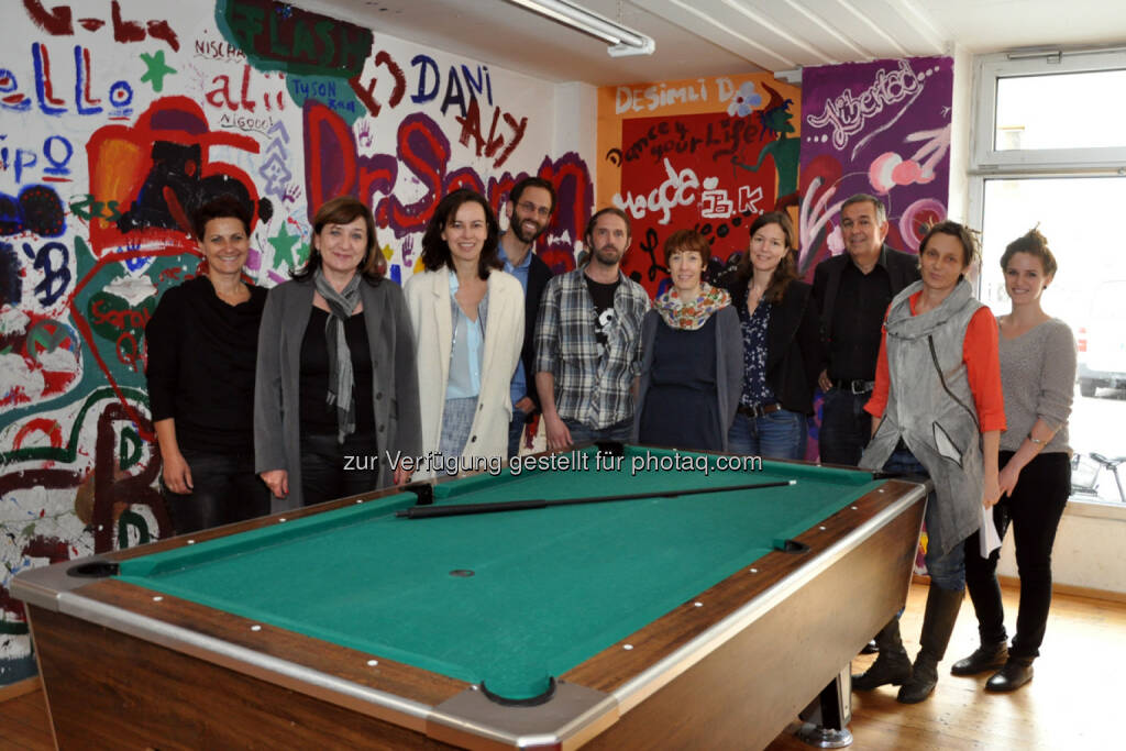 Petra Innerkofler (Abteilung Juff), Beate Palfrader (Landesrätin), Sophie Karmasin (Jugendministerin), Lukas Trentini (Geschäftsführung Pojat), Andreas Reisigl (Leiter der Mobilen Jugendarbeit Reutte, Pojat-Mitglied), Martina Steiner (Mobile Jugendarbeit Innsbruck Land Ost, Pojat-Mitglied), Melania Jakober-Hofer (Leiterin Jugendzentrum Space, Pojat-Mitglied), Reinhard Macht (Abteilung Juff, Leitung Fachbereich Jugend), Elfi Oblasser (Geschäftsführung Z6), Elisa Dörler (Jugendarbeiterin Z6) : Jugendministerin Karmasin und Landesrätin Palfrader nehmen Tiroler Jugendarbeit unter die Lupe : Jahr der Jugendarbeit legt Fokus auf Leistungen der außerschulischen Jugendarbeit - Tirol mit vorbildhaften Projekten vertreten : Fotocredit: Pidner/Land Tirol, © Aussendung (21.04.2016)