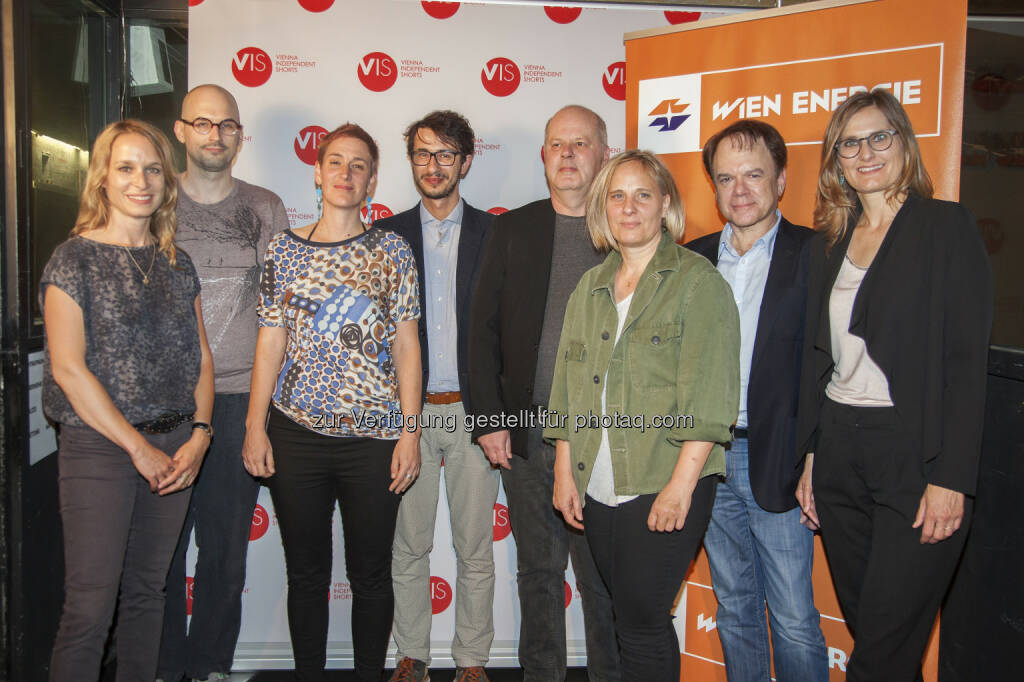 Mirjam Unger (Regisseurin und Autorin), Matija Schellander, Lisbeth Kovačič (Gewinnerin Jurypreis), Michał Błaszczyk (Gewinner Publikumspreis), Andreas Ungerböck (Filmkritiker und Herausgeber), Astrid Heubrandtner-Verschuur (Vorsitzende des Kameraverbandes aac), Robert Dassanowsky (Filmwissenschafter und Produzent), Alexandra Radl (Marketingleiterin Wien Energie) : "Night of the Light" Wien Energie Kurzfilm-Preise 2016 verliehen : Fotocredit: Wien Energie/die Eventfotografen, © Aussendung (31.05.2016)