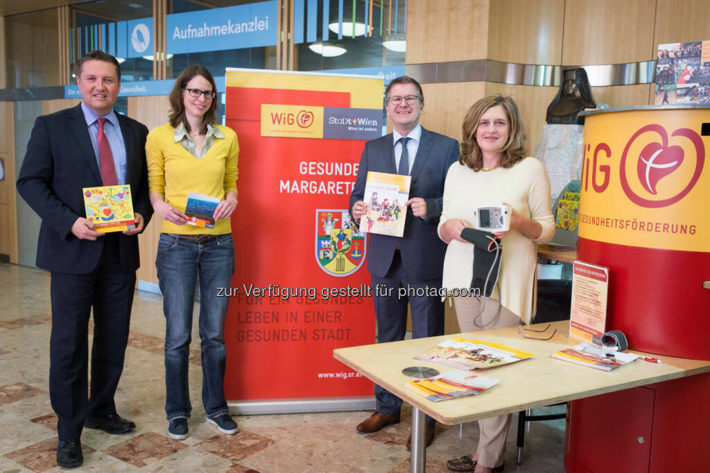 Markus Zemanek (GF Krankenhaus St. Elisabeth), Monika Bader-Wehinger (Programmleiterin Gesundes Margareten), Andreas Achrainer (GF Hartmannspital), Susanne Schäfer-Wiery (Bezirksvorsteherin) : Gesundheitstour der Wiener Gesundheitsförderung zu Besuch im Hartmannspital in Margareten für umfassende Gesundheitsbetreuung : Fotocredit: WiG - Rinkhy, © Aussender (15.04.2016)