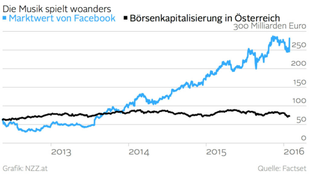 Marktwert von Facebook vs. Börsenkapitalisierung in Österreich (Grafik von http://www.nzz.at ) (29.01.2016)
