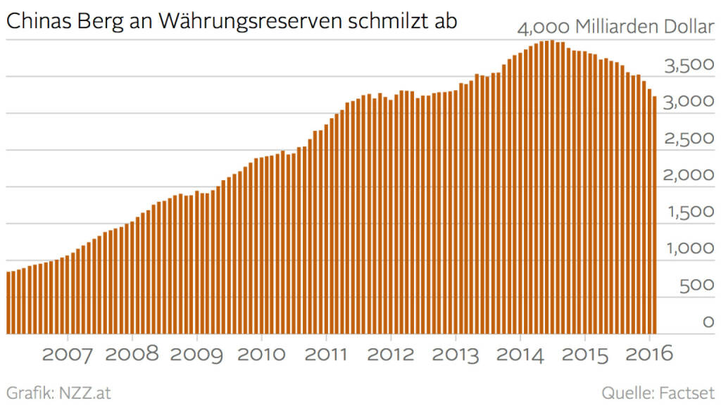 Chinas Berg an Währungsreserven schmilzt ab (Grafik von http://www.nzz.at) (03.03.2016)