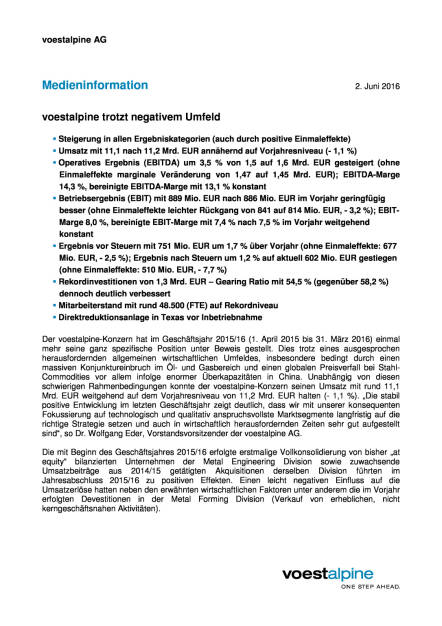 voestalpine trotzt negativem Umfeld, Seite 1/3, komplettes Dokument unter http://boerse-social.com/static/uploads/file_1155_voest... (02.06.2016)