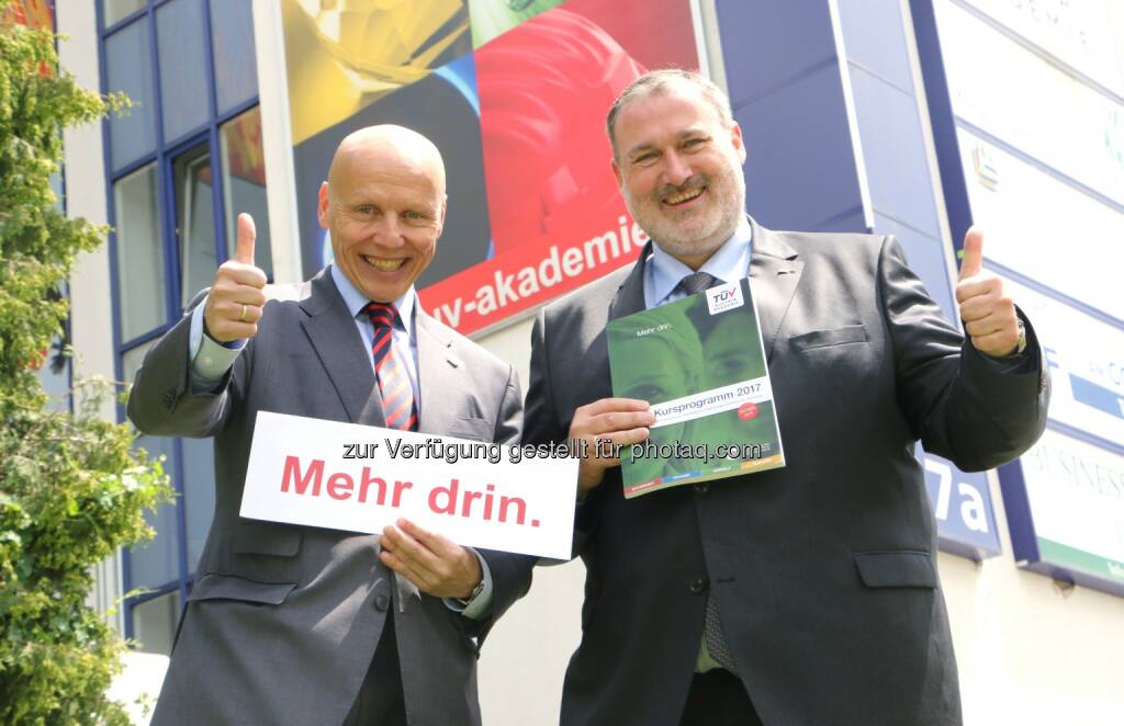 Christian Bayer (GF TÜV Austria Akademie.), Thomas Rochowansky (Prokurist, Leiter des Geschäftsfeldes Lerndienstleistungen, TÜV Austria Akademie) : Zum Tag der Weiterbildung am 8. Juni 2016 veröffentlicht die TÜV Austria Akademie das neue TÜV-Kursprogramm 2017 : TÜV Austria Akademie/Munk, © Aussender (08.06.2016)