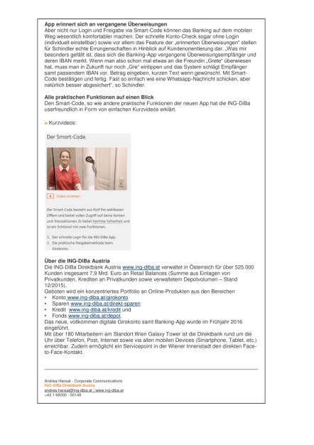 ING-DiBa startet mit Smart-Code, Seite 1/2, komplettes Dokument unter http://boerse-social.com/static/uploads/file_1518_ing-d... (28.07.2016)