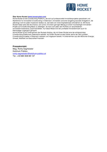 Home Rocket: Erstes Projekt in Deutschland, Seite 1/2, komplettes Dokument unter http://boerse-social.com/static/uploads/file_1631_home_... (17.08.2016)