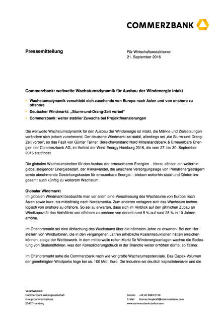 Commerzbank: Weltweite Wachstumsdynamik für Ausbau der Windenergie intakt, Seite 1/3, komplettes Dokument unter http://boerse-social.com/static/uploads/file_1810_comme... (21.09.2016)