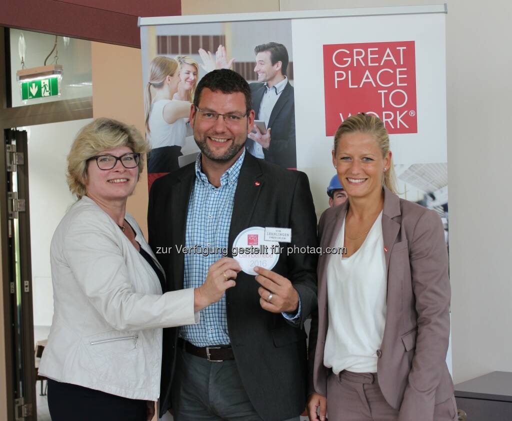 Doris Palz (GF Great Place to Work), Christian Putz (Personalleiter Lidl Österreich), Anna Birgmann (Consultant Personal Lidl Österreich) : Lidl Österreich bekommt als erstes Unternehmen das Zertifikat „Österreichs beste Lehrbetriebe“ : Fotocredit: Lidl Österreich, © Aussendung (11.10.2016)