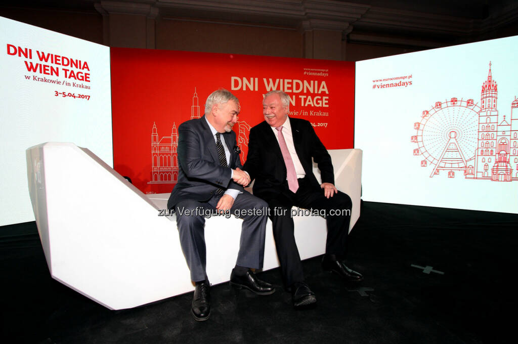 Bürgermeister Prof. Majchrowski und Bürgermeister Dr. Michael Häupl in Krakau - WH Medien GmbH: Wien in Krakau: Innovation und Lebensqualität im Mittelpunkt (Fotograf: fot. Piotr Kedzierski / Fotocredit: Eurocomm-PR), © Aussender (05.04.2017)