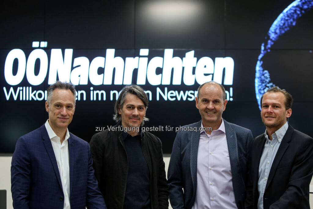 Thomas Arnoldner, Iztok Lemajic, Gerald Mandlbauer, Clemens Thaler. Arnoldner und Thaler haben das "Projekt Newsroom" geleitet. - Oberösterreichische Nachrichten: Ankunft und Aufbruch: Die OÖNachrichten sind in ihren neuen Newsroom übersiedelt (Fotocredit: OÖN/Weihbold), © Aussender (19.04.2017)